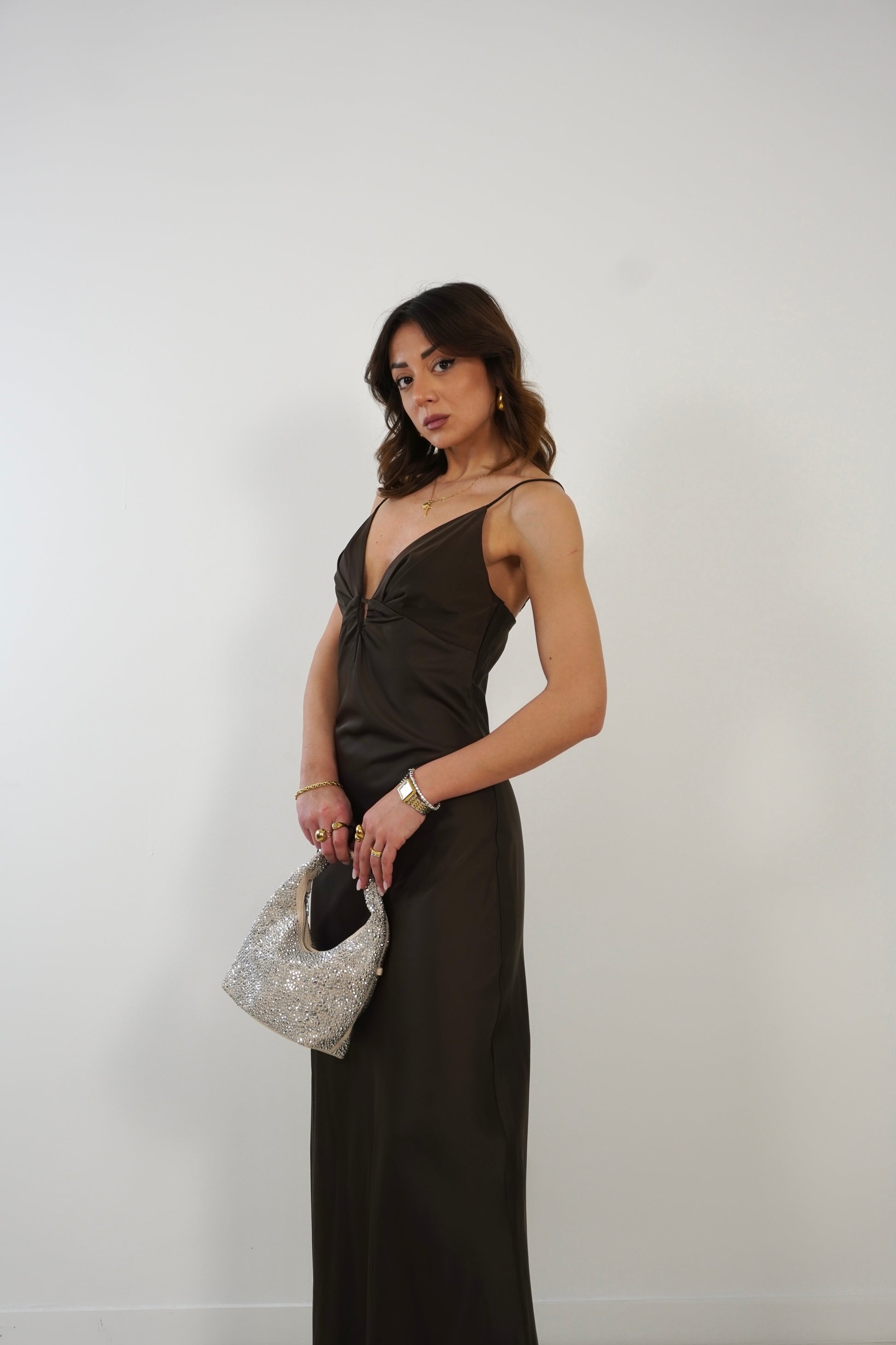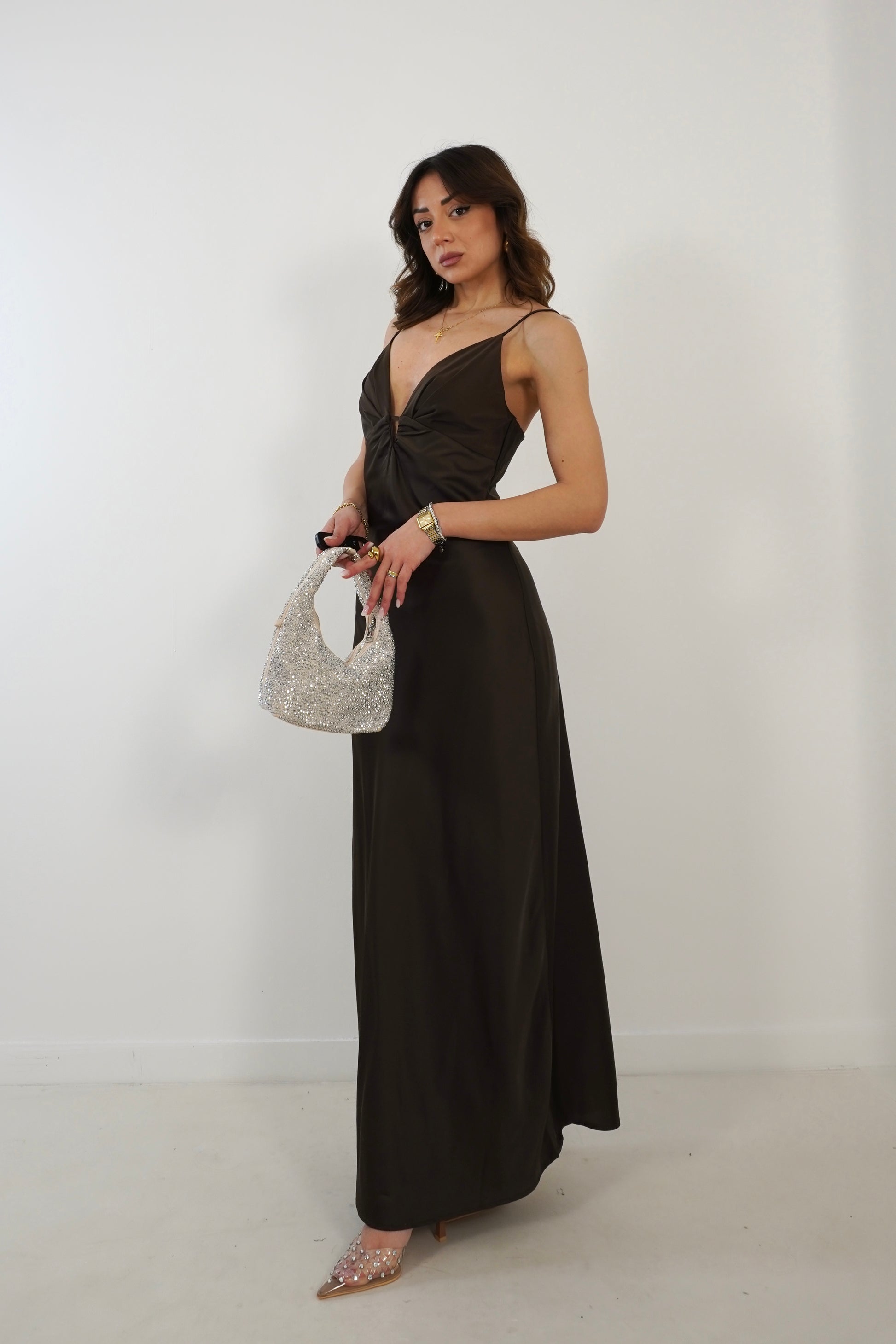 Abito lungo scivolato in satin con bretelle regolabili.
