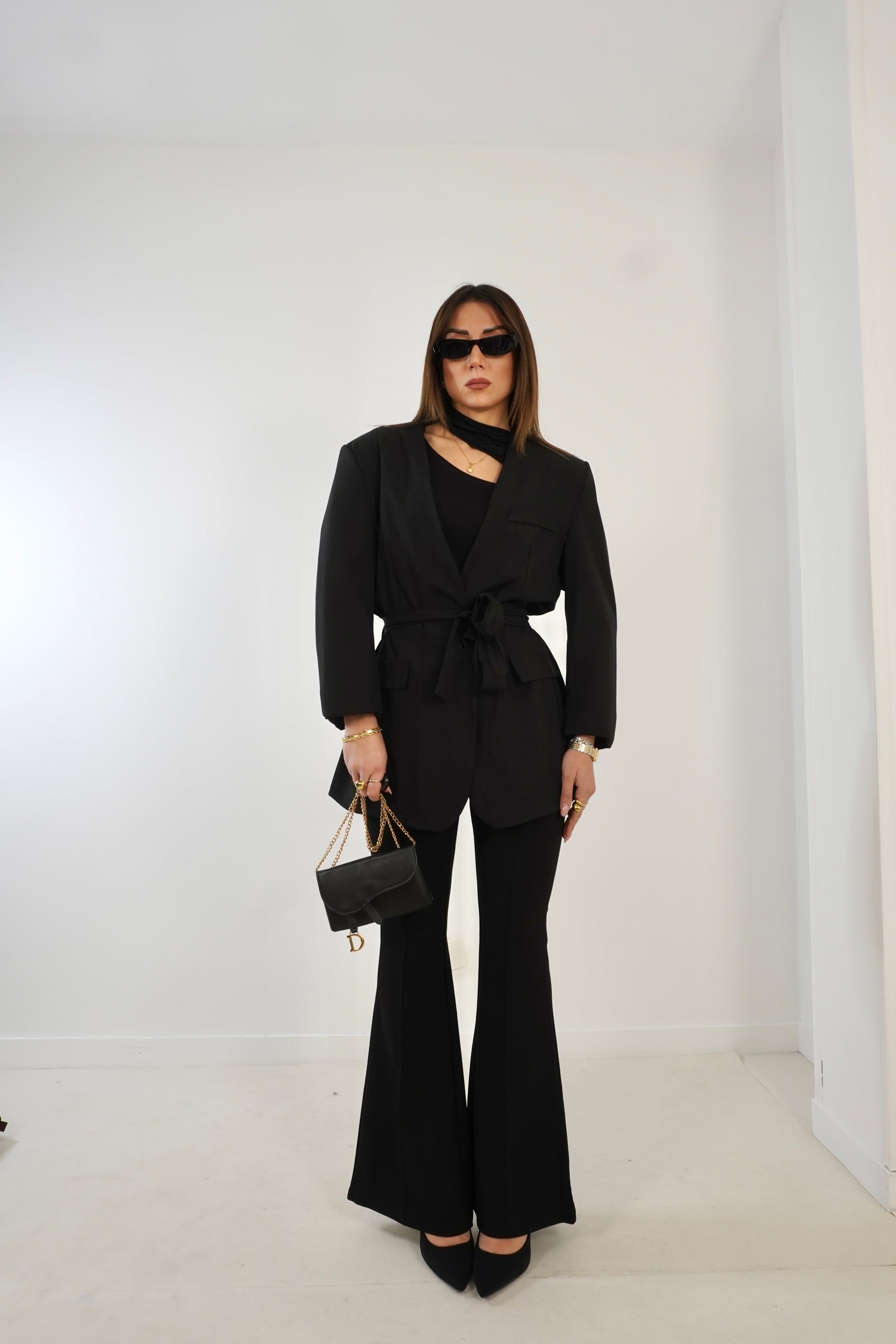 Blazer con scollo a V e fusciacca in vita.