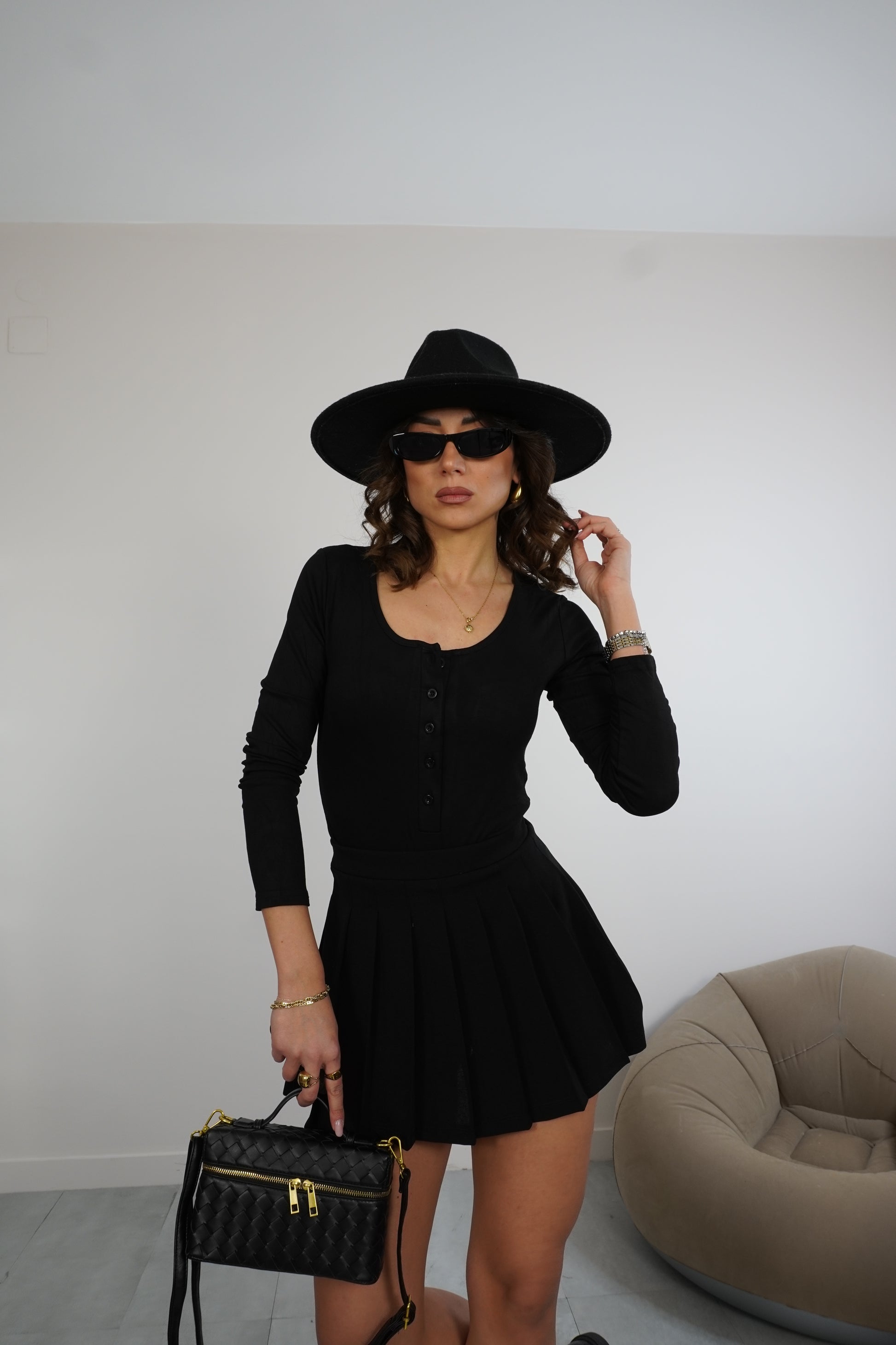 Body scollo tondo con bottoni.