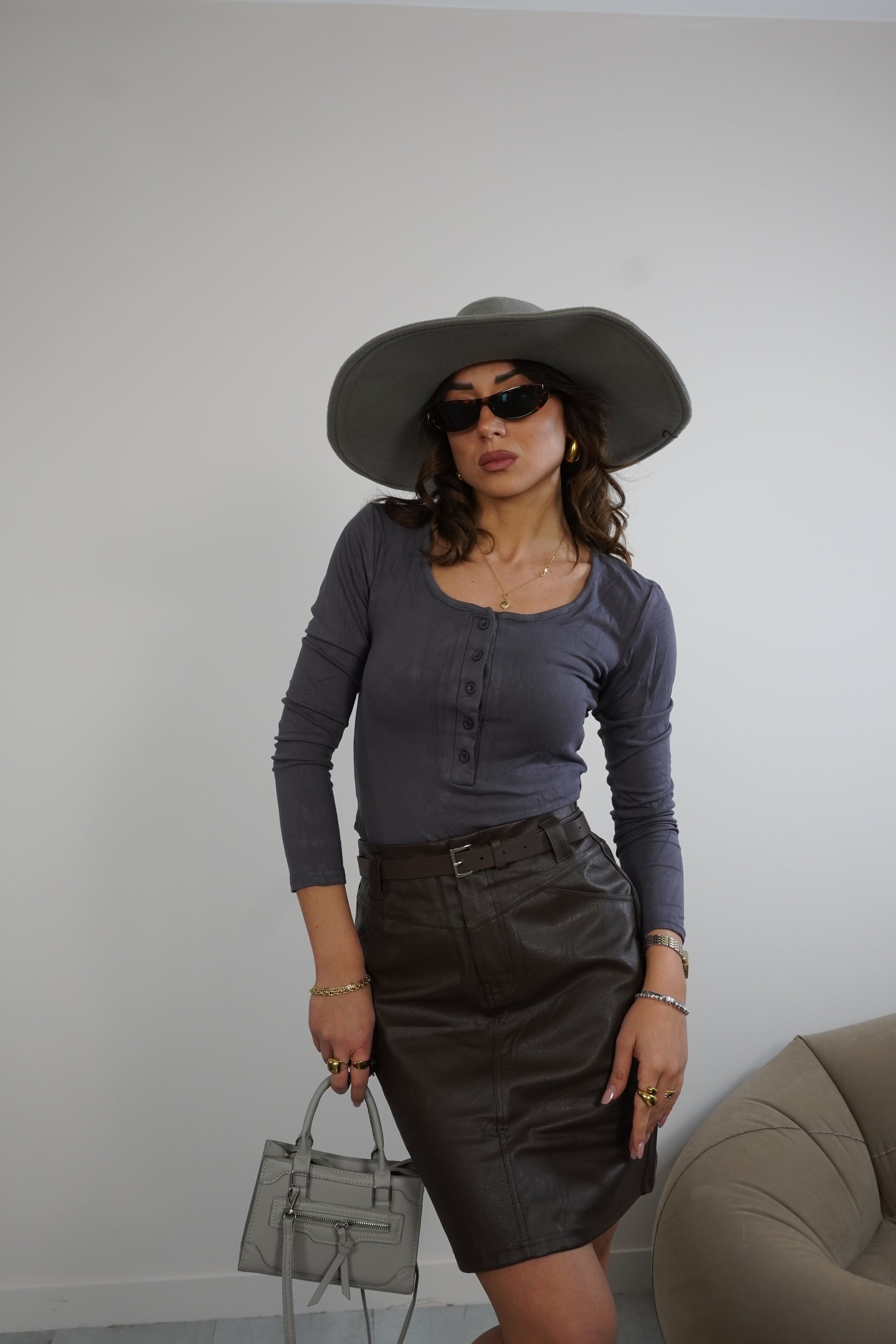 La modella é alta 1.73 e indossa generalmente S. Dei jeans/pantaloni/gonne in tela ELASTICA indossa taglia XS/38it/34eu. Dei jeans/pantaloni/gonne in tela RIGIDA indossa S/40it/36eu.
