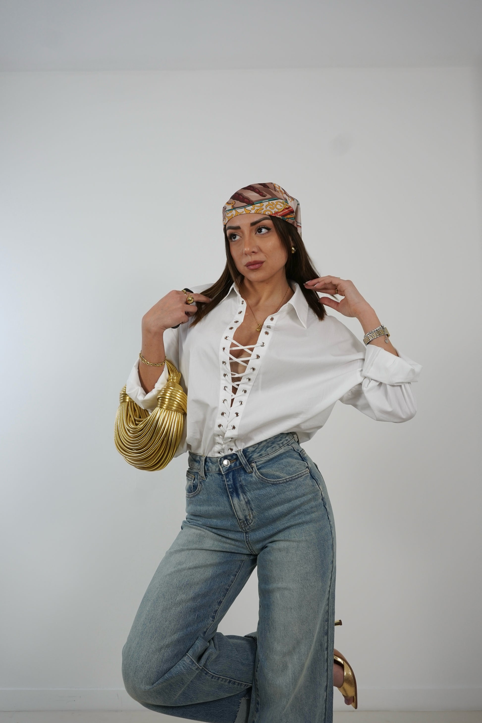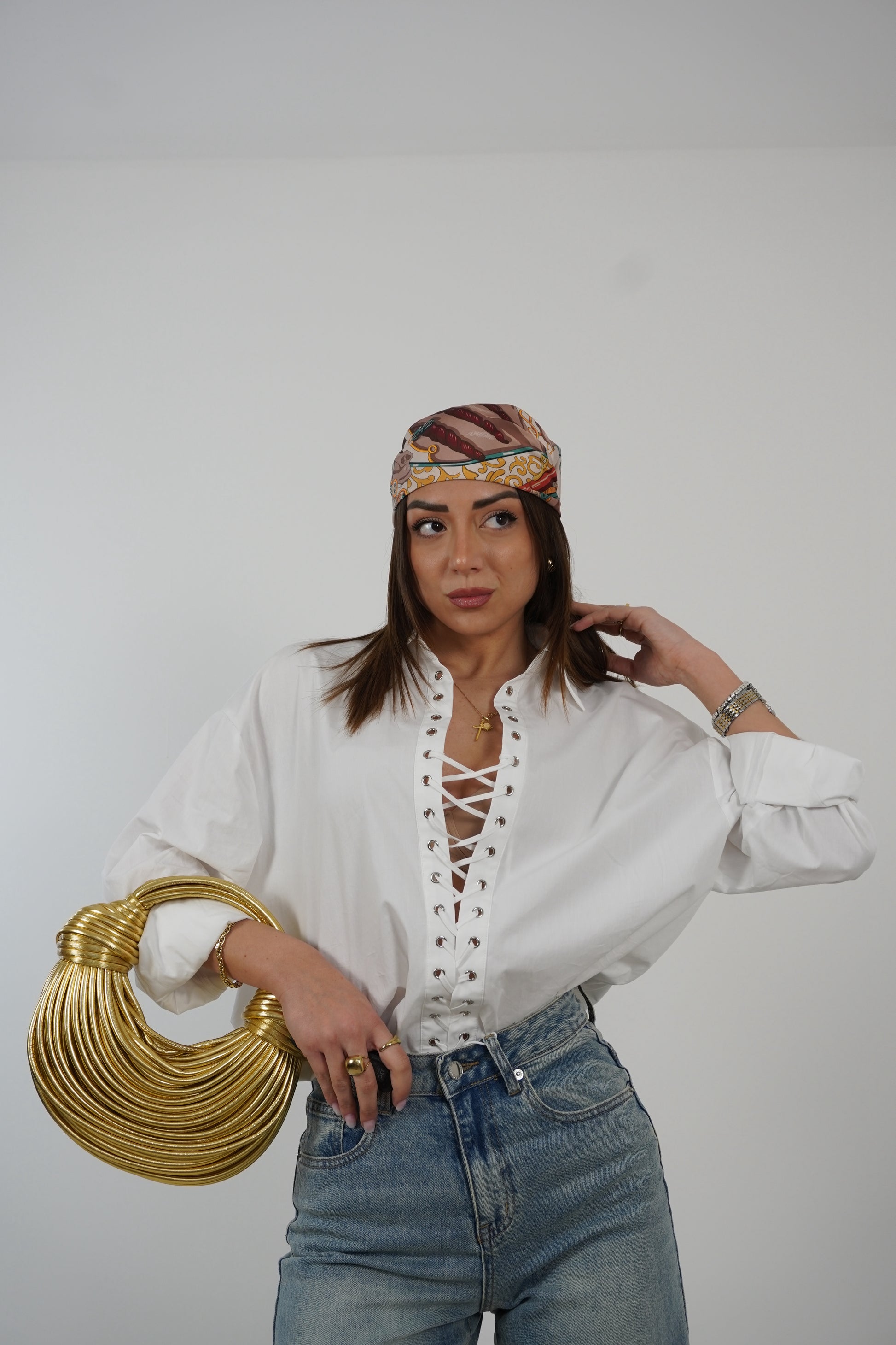 Camicia con abbottonatura stile corsetto bianca in popeline.