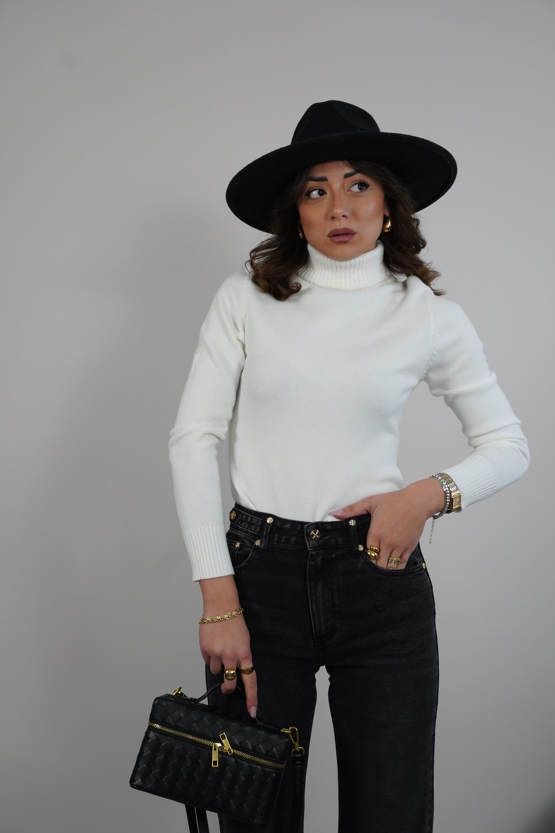 Maglione dolcevita con collo a coste.