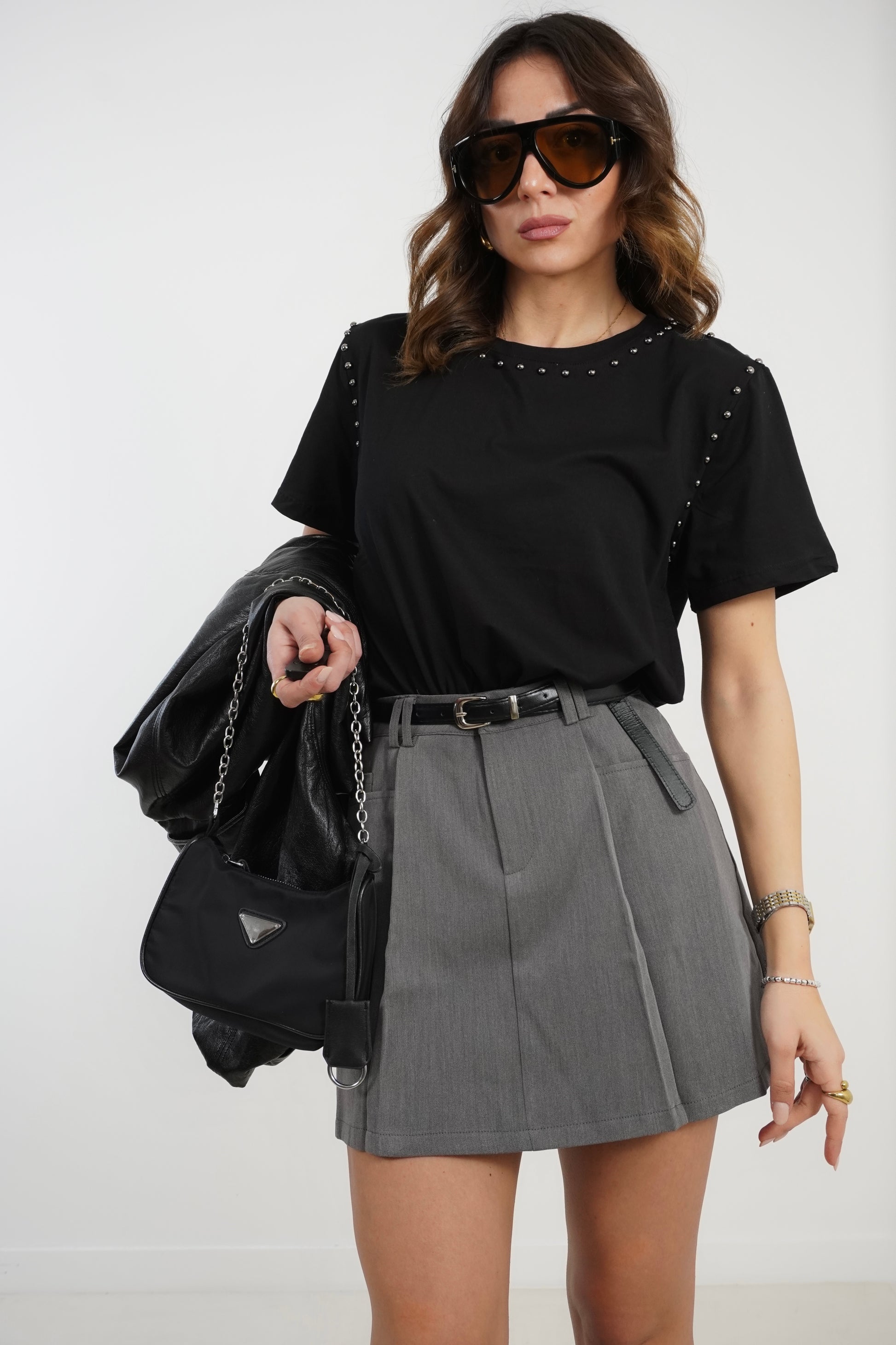 Gonna con pieghe e cintura A65064