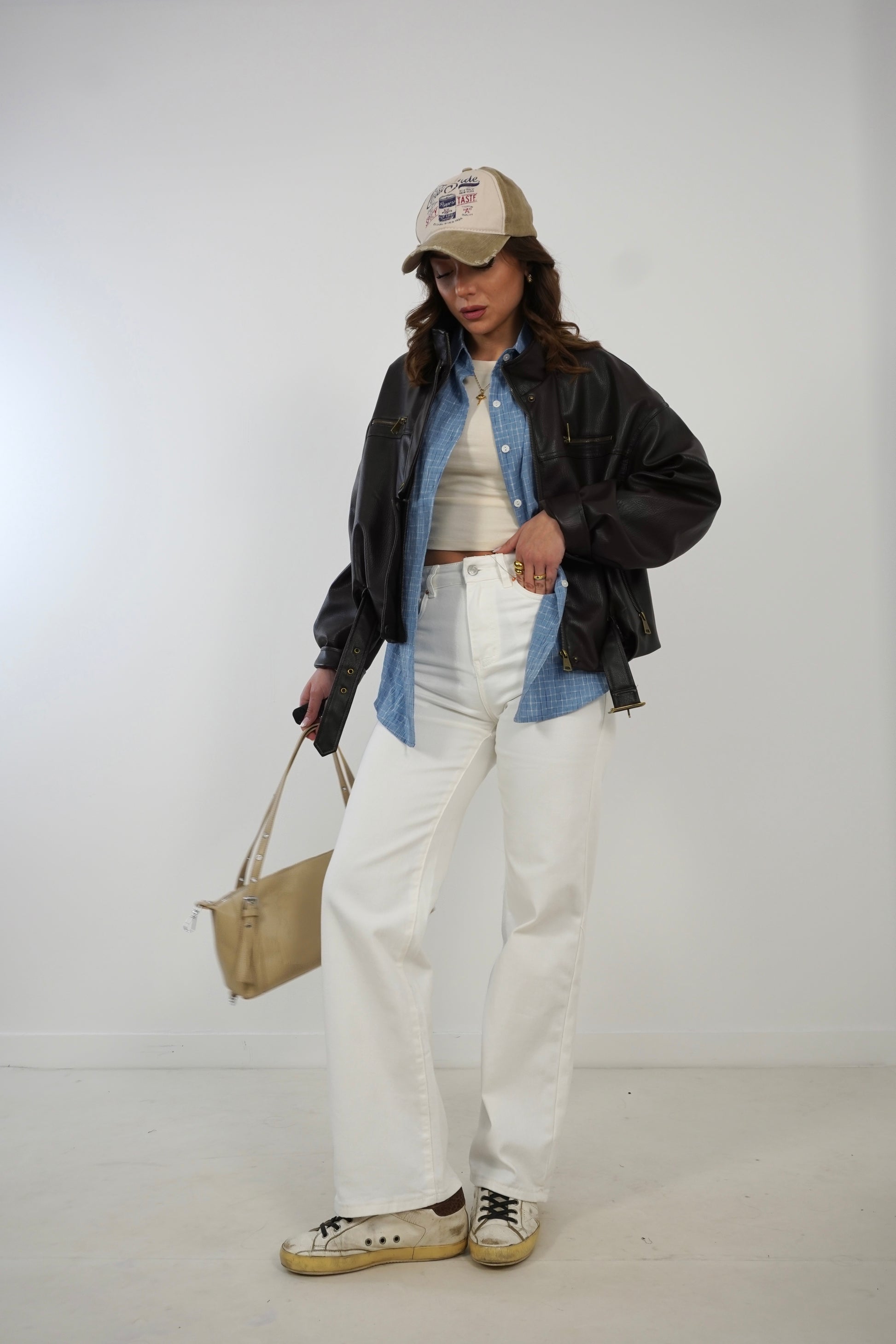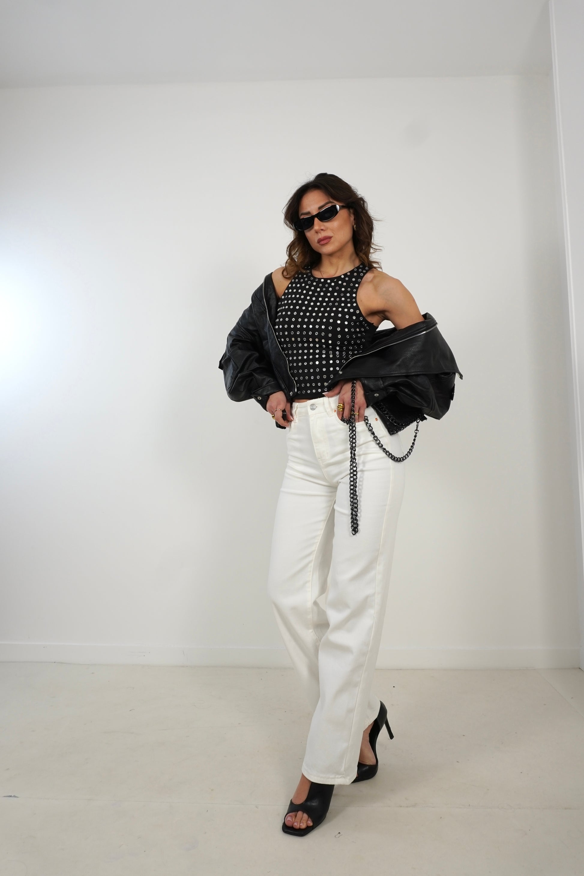 La modella é alta 1.73 e indossa generalmente S. Dei jeans/pantaloni/gonne in tela ELASTICA indossa taglia XS/38it/34eu. Dei jeans/pantaloni/gonne in tela RIGIDA indossa S/40it/36eu.