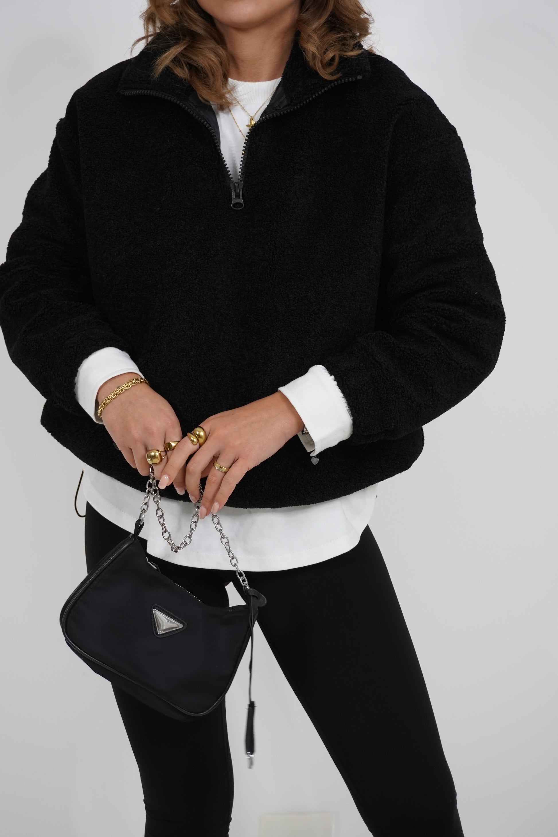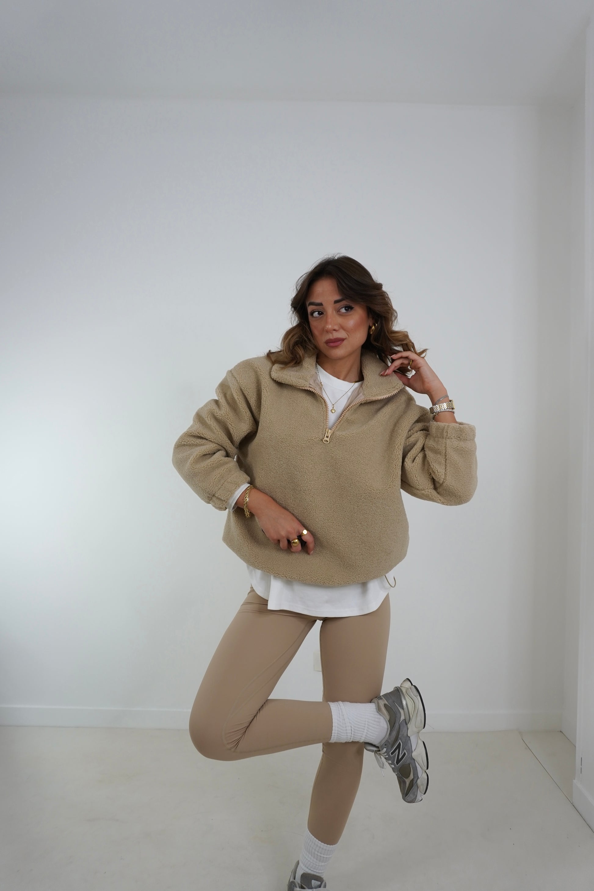Felpa a mezza zip in pile foderata, con elastici regolabili sul fondo.